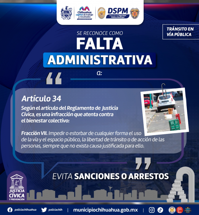 - El Gobierno Municipal pide a los chihuahuenses no obstruir banquetas ni áreas públicas con autos u otros objetos