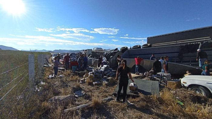 Chihuahua, Chih. - Este domingo el conductor de un tráiler cargado con dos plataformas llenas de cerveza, sufrió un accidente que terminó en volcadura, lo que provocó que decenas, sino es que cientos de personas se...