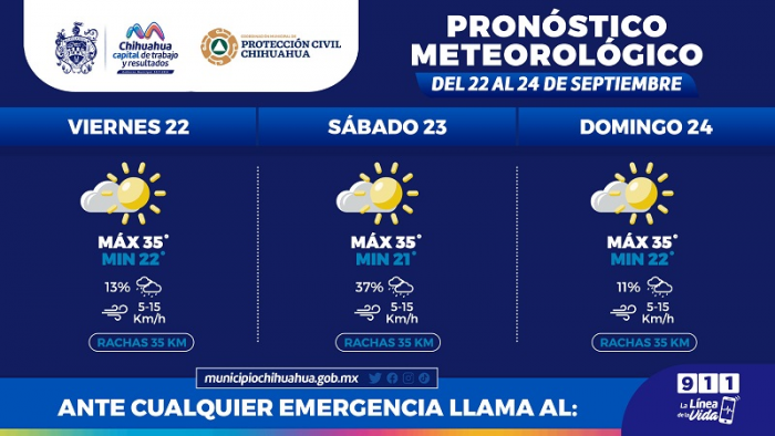 Chihuahua, Chih.- La Coordinación Municipal de Protección Civil, informa que este fin de semana, del 22 al 24 de septiembre, se...