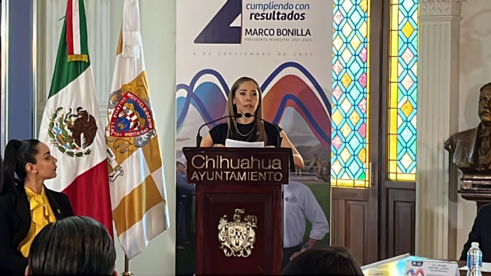 Chihuahua, Chih.- Durante la sesión de Cabildo de este día en la que el presidente Municipal de Chihuahua entregó su Segundo Informe de Trabajo, la regidora Ana Lilia Orozco hizo énfasis en avances de obra pública,...