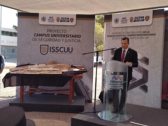 Chihuahua, Chih.- El alcalde, Marco Bonilla dio inicio a la construcción del nuevo Campus de Seguridad y Justicia del Instituto Superior de Seguridad Chihuahua, a un costado de la Comandancia Sur de la Policía Municipal.