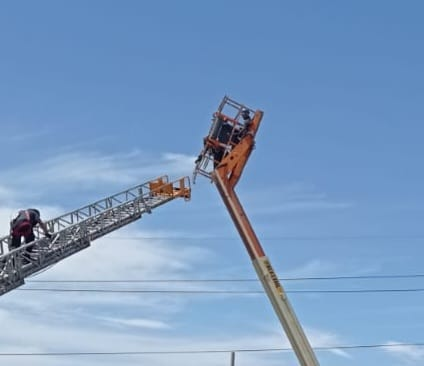 Chihuahua, Chih.- Trabajadores de una empresa ubicada sobre el Lombardo Toledano y calle Segunda quedaron atrapados en las alturas de una canasta metálica de una grúa, en la que realizaban algunas reparación, sus cuerpos estaban...
