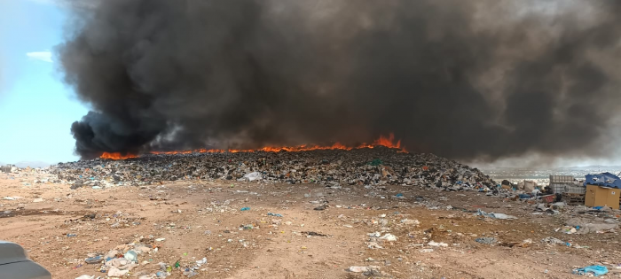Chihuahua, Chih.- La tarde de este sábado, surgió un incendio en la celda dos del actual relleno sanitario de Chihuahua, ubicado en la salida a Aldama, y a...