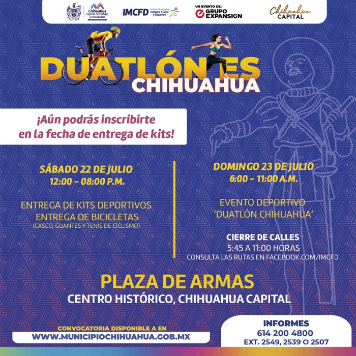 Chihuahua, Chih.- Con la visita de deportistas de diversos puntos del país, este fin de semana se realizará el “Duatlón Ciudades...