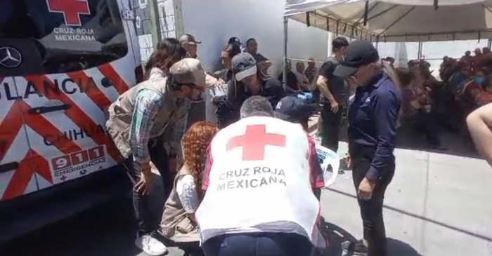 Chihuahua, Chih.- Varios adultos mayores han estado sufriendo insolaciones, desmayos entre otros malestares por las fuertes temperaturas a las que están expuestos desde la mañana afuera del Banco del Bienestar ubicado en la Primera de...