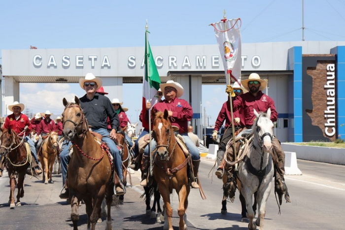 Chihuahua, Chih.- El alcalde de Chihuahua Capital Marco Bonilla Mendoza, recibió en la caseta de Sacramento, al contingente de jinetes que viajaron desde Ciudad Juárez, Ascensión, Maguarichi y Conchos,...