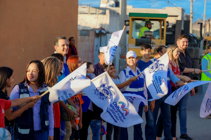 Chihuahua, Chih.- El alcalde Marco Bonilla y familias de la colonia Villas del Norte, dieron el banderazo de salida a las maquinarias que...
