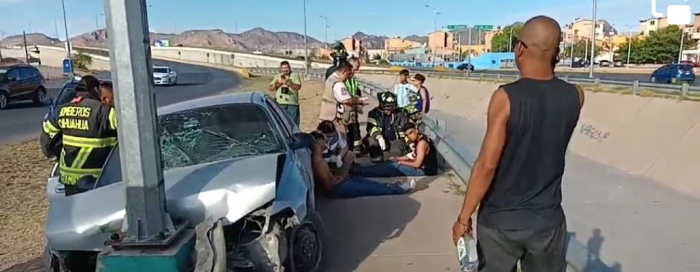 Chihuahua, Chih.- Un fuerte accidente se presentó hace unos momentos en una curva de Los Nogales y Sacramento al norte de la ciudad lo cual requirió la intervención de rescate por parte de Bomberos.