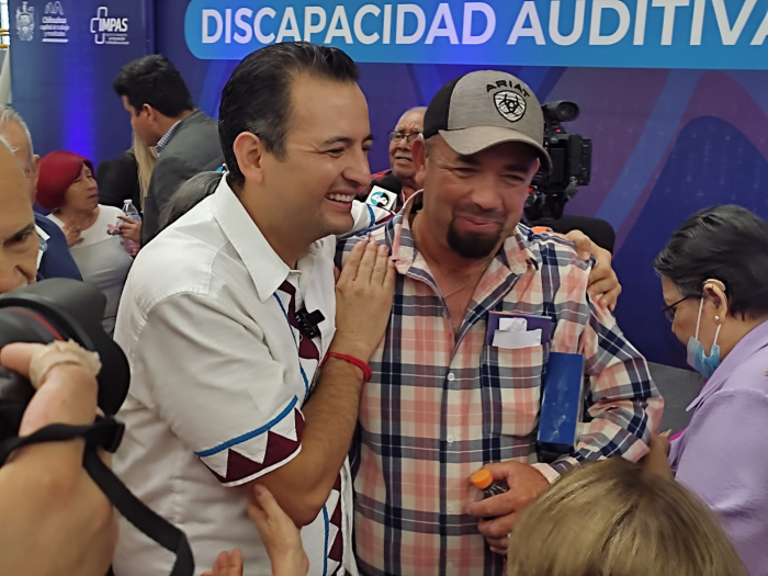Chihuahua, Chih.- Durante la mañana de este viernes, el alcalde Marco Bonilla encabezó la entrega de aparatos auditivos a 66 familias que tienen...
