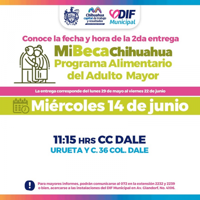 Chihuahua, Chih.- El Gobierno Municipal que dirige el alcalde Marco Bonilla, a través del DIF, informa a la ciudadanía que el...