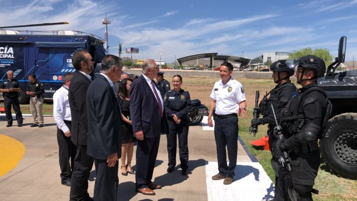 El jefe de la Policía Municipal Julio César Salas, brindó el recorrido a los funcionarios norteamericanos.