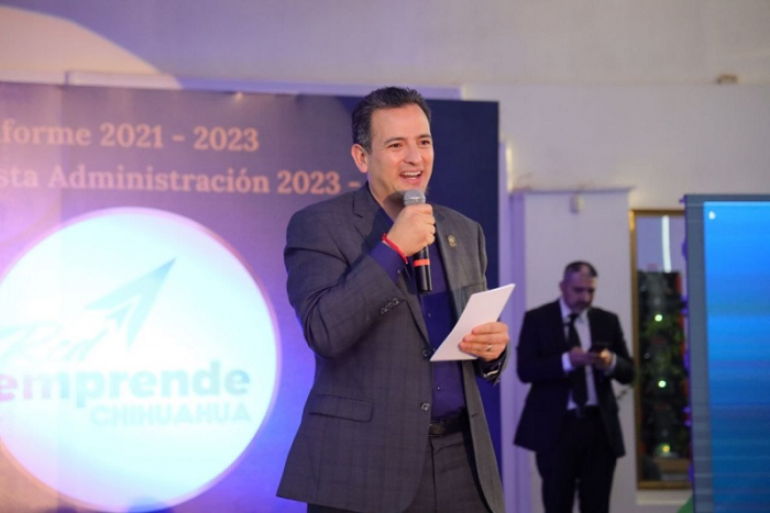 Chihuahua, Chih.- El alcalde de Chihuahua, Marco Bonilla, asistió al informe de labores de la Red Emprende en su...