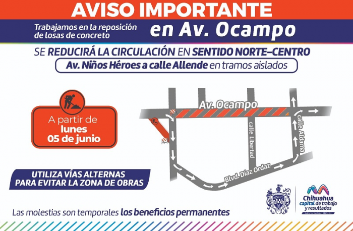 Chihuahua, Chih.- El próximo lunes 5 de junio, la Dirección de Obras Públicas Municipales,...