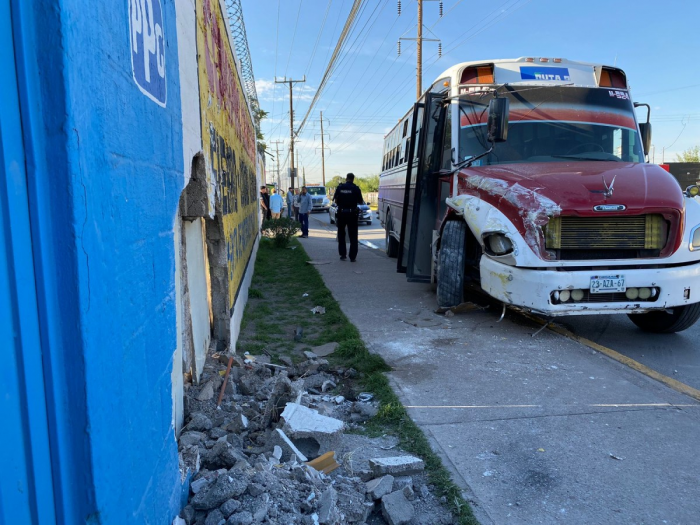 Chihuahua, Chih.- Hace unos minutos un fuerte choque se registró sobre la Avenida de las Industrias con la calle Paracaidistas, donde estuvo involucrado un camión de transporte personal.