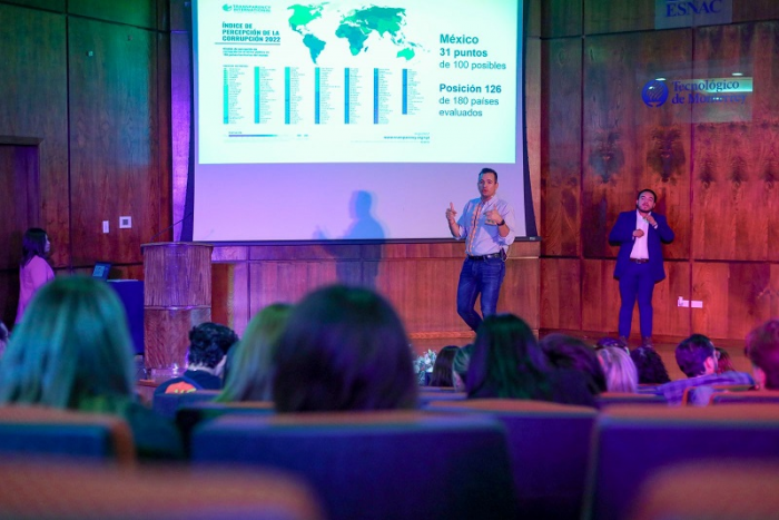 Chihuahua, Chih. - El alcalde de Chihuahua, Marco Bonilla Mendoza clausuró en el Instituto Tecnológico de Monterrey, ante la asistencia de estudiantes de diversas carreras, las actividades de la Semana del...