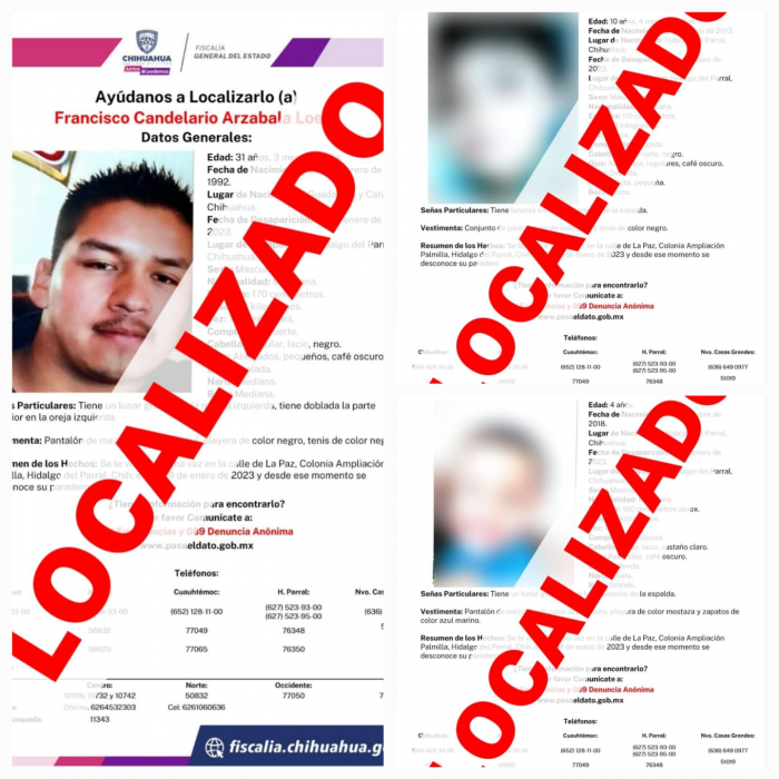 Chihuahua, Chih.- La Fiscalía informó que Francisco Arzabala y sus dos hijos menores de edad, Gael y Mateo, han sido encontrados sanos y salvos.
