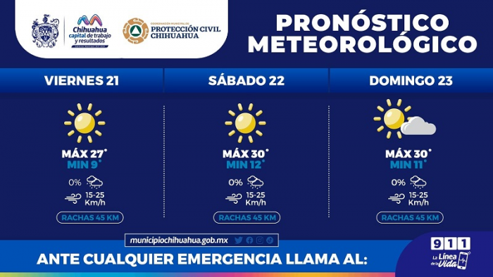 Chihuahua, Chih.- La Coordinación Municipal de Protección Civil, informa a la población, que este fin de...