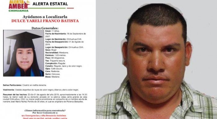 Chihuahua, Chih.- En el estado de Sinaloa se logró la captura de José María Núñez, buscado por las autoridades de Chihuahua desde el 2019 cuando raptó a la menor de 11 años, Dulce Yareli N.N.