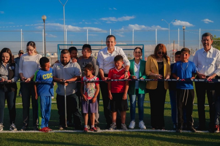 Chihuahua, Chih- El alcalde de Chihuahua, Marco Bonilla, inauguró un salón de usos múltiples y una cancha para futbol...