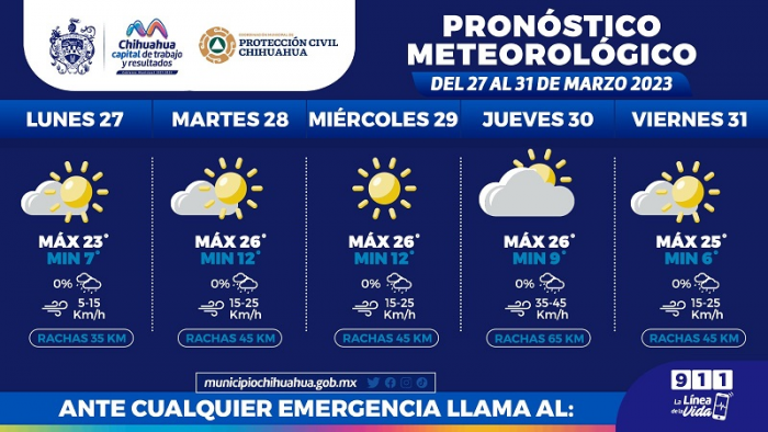 Chihuahua, Chih.- La Coordinación Municipal de Protección Civil, informa que, para esta semana...