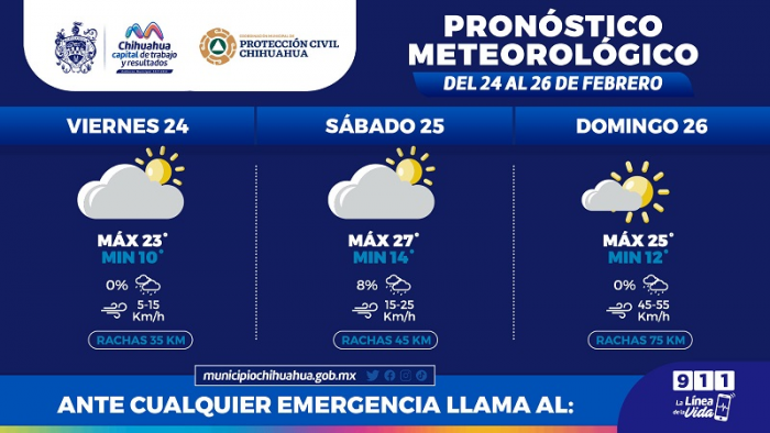 Chihuahua, Chih.- La Coordinación de Protección Civil Municipal, informa que para este fin de semana las...