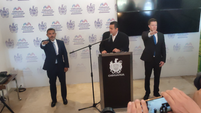 Chihuahua, Chih.- En rueda de prensa, el Alcalde, Marco Bonilla ratificó y nombró a Roberto Fuentes como nuevo Secretario del Ayuntamiento