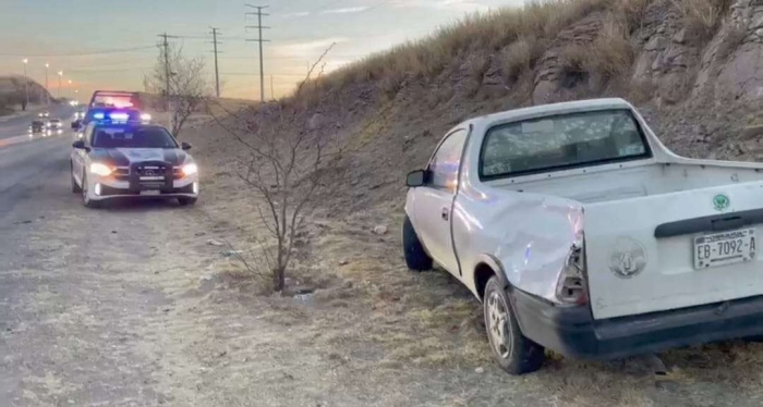 Chihuahua, Chih.- Esta mañana se registró un fuerte choque sobre la carretera Aldama - Chihuahua, donde el conductor de una pick up impactó contra un pequeño cerro a un costado de la cinta asfaltico.