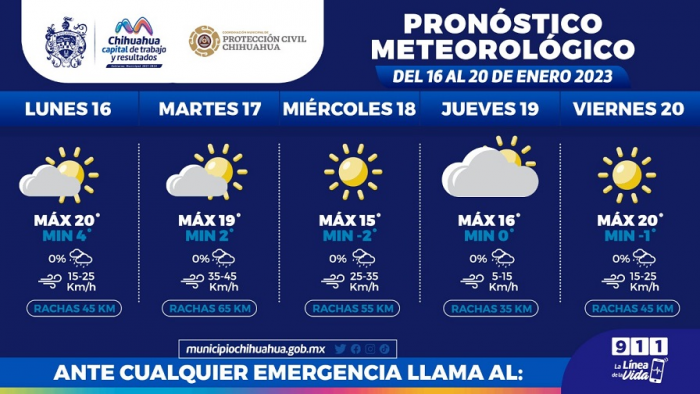 Chihuahua. -La Coordinación Municipal de Protección Civil, informa que de la semana del 16 al 20 de enero se esperan días fríos con...