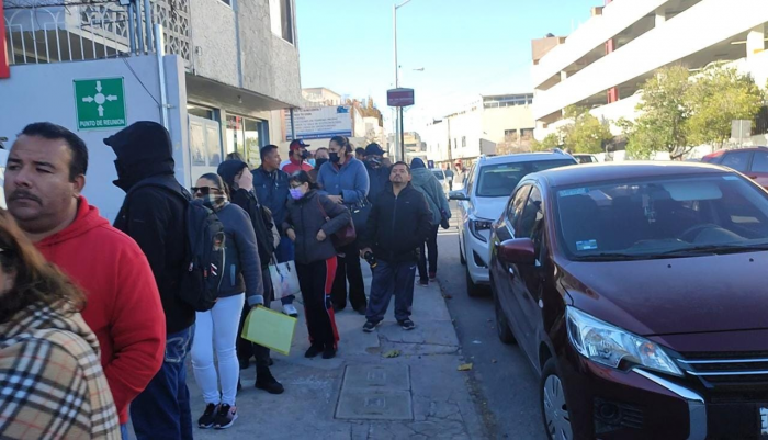 Chihuahua, Chih.- Chihuahuenses realizan megafilón en instalaciones de Infonavit en el centro de la capital donde personas arribaron al lugar para realizar diferentes trámites.