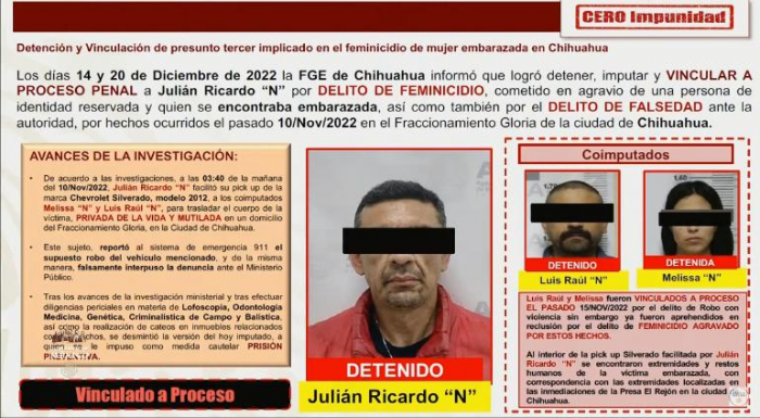 Chihuahua, Chih.- Durante La Mañanera del presidente de la República, Andrés Manuel López Obrador se dio a conocer sobre la detención de las tres personas detenidas por torturas y asesinar a una jovencita de 19...