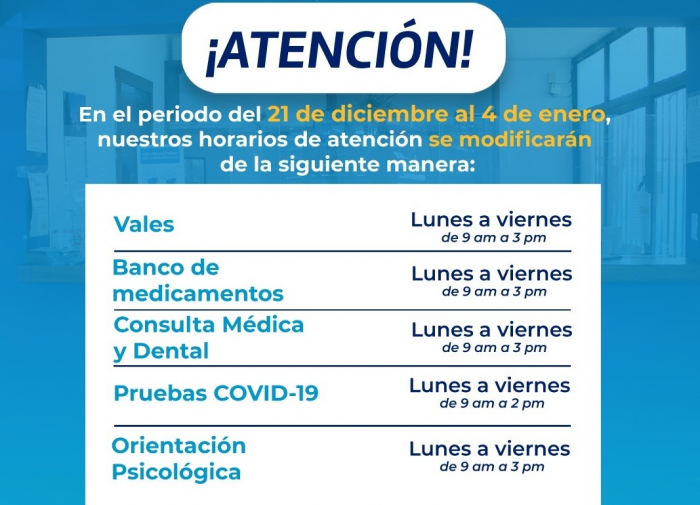 A partir del 21 de diciembre y hasta el 4 de enero del 2023 habrá modificación de horarios en todos los servicios