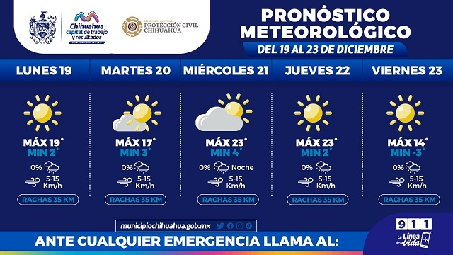 Chihuahua, Chih.- La Coordinación Municipal de Protección Civil, informa que para esta semana las temperaturas se...