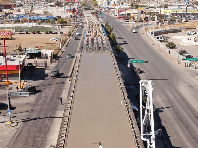 La Dirección de Obras Públicas, inició con el colado de concreto hidráulico de las dos primeras losas del Paso Superior del Distribuidor Vial Sur.