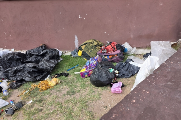 Chihuahua, Chih.- Entre botellas de mezcal, latas de cerveza y utensilios para fumar cristal, esta mañana se desplegó un operativo policial en el trébol de la avenida Universidad y Canal.