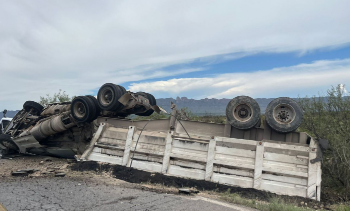 Chihuahua, Chih.- Un tráiler volcó en el kilómetro 56 de la carretera Chihuahua-Ojinaga, en el tramo Aldama-Ojinaga, lo que ha generado circulación con precaución en la zona.