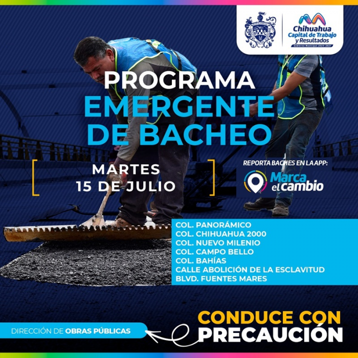 Chihuahua, Chih.- El Gobierno Municipal a través de la Dirección de Obras Públicas, realizará trabajos de bacheo mediante el programa...