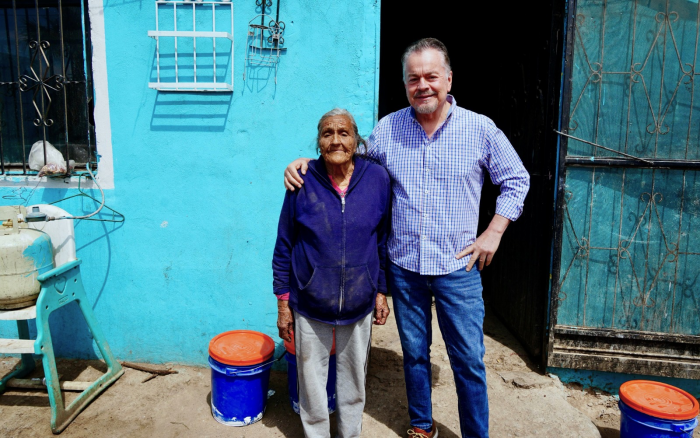 Chuhuahua, Chih.- El Senador Mario Vázquez Robles acudió a la colonia Agrícola Francisco Villa donde realizó la entrega de láminas, polines e impermeabilizante a familias que requerían los...