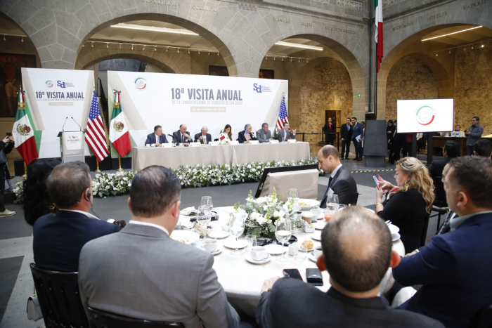 Chihuahua, Chih.- Durante la 18ª Visita Anual de la Cámara Regional de Comercio de San Diego realizada en la Vieja Casona de Xicoténcatl, el senador Mario Vázquez Robles, representante del estado de Chihuahua,...