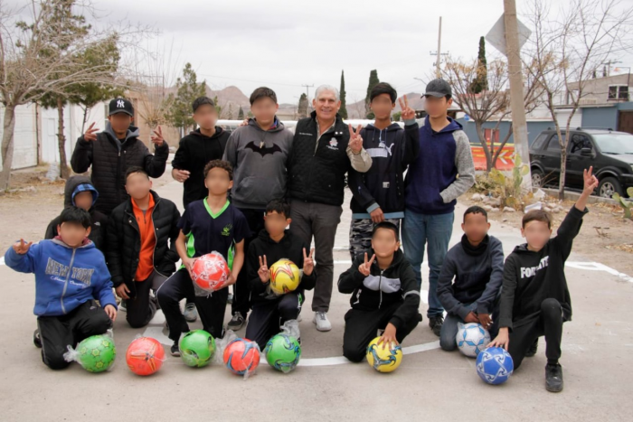 Chihuahua, Chih.- El diputado Mario Rodríguez del Partido Acción Nacional (PAN), contribuye al bienestar de la comunidad con la construcción e inauguración de una cancha de fútbol.