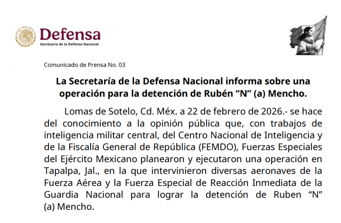 Chihuahua, Chih.- El Ejército Mexicano confirmó el abatimiento de Rubén N., alias El Mencho, identificado como líder del Cártel Jalisco Nueva Generación, tras un operativo federal realizado en el...