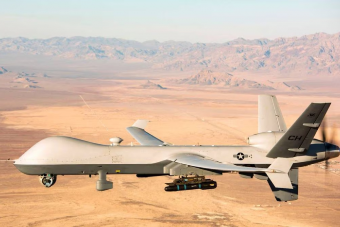La aeronave no tripulada giró y se alejó de la frontera estatal de Rusia tras el acercamiento con un caza ruso, informa Ministerio de Defensa
