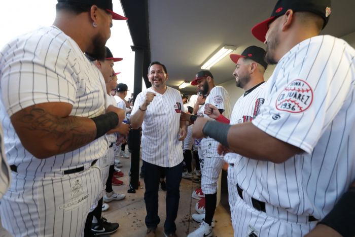 Ciudad Juárez, Chih.- El Presidente Municipal, Cruz Pérez Cuéllar, lanzó la primera pelota en el juego en el que los Indios de Juárez recibieron a los Mineros de Parral en el arranque de la...