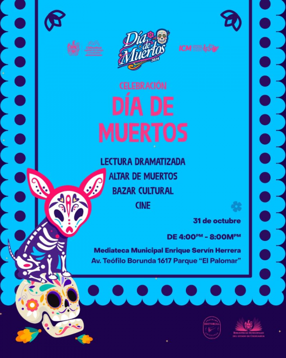 Chihuahua, Chih.- El Gobierno Municipal, invita este 31 de octubre a unirse a la celebración del Día de Muertos en la Mediateca Municipal...