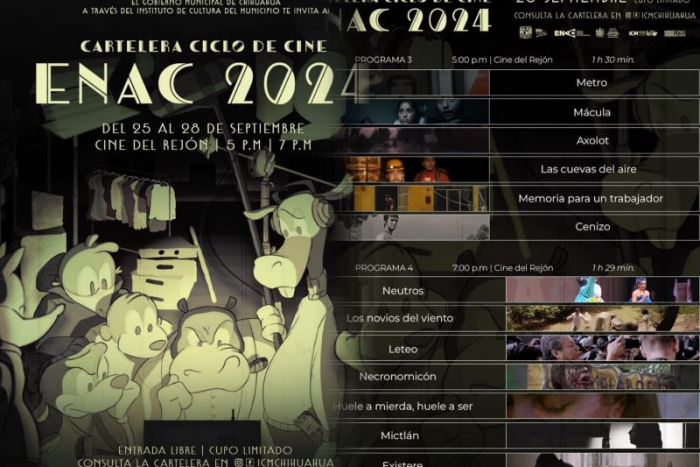 Chihuahua, Chih.- El Instituto de Cultura del Municipio, invita a disfrutar del “Ciclo de Cine ENAC 2024”, evento cinematográfico que se...