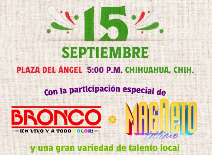 Los grupos Bronco y Magneto encabezan la cartelera que deleitará a las familias chihuahuenses la tarde y noche del 15 de septiembre, en las inmediaciones de la Plaza Mayor