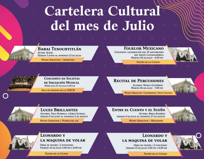 Chihuahua, Chih.- El Gobierno Municipal de Chihuahua que preside el alcalde Marco Bonilla, a través del Instituto de Cultura Municipal, da a conocer el calendario de actividades del mes de julio, con el...