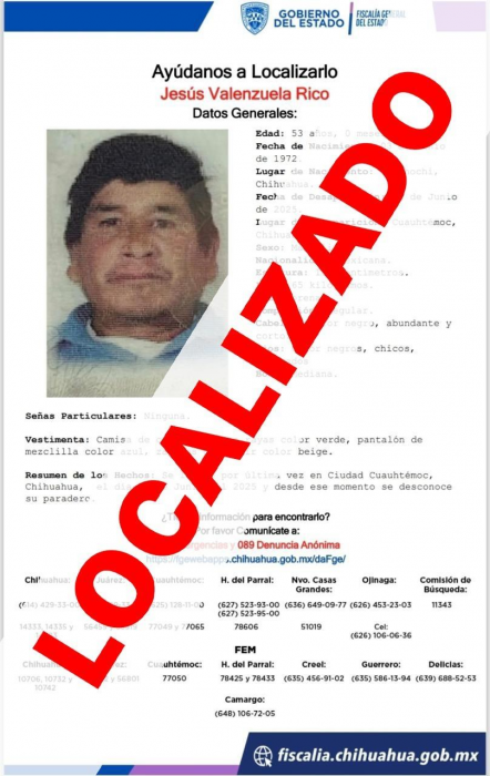 Chihuahua, Chih.- La Fiscalía de Distrito Zona Occidente dio por concluidas las carpetas de Investigación iniciadas con motivo del reporte de desaparición de dos masculinos, uno de ellos menor de edad quienes fueron...
