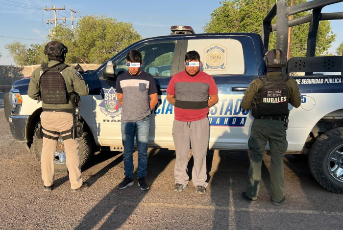 CHIHUAHUA, Chih., 26 de abril de 2025.-Personal de la Policía Rural de la Secretaría de Seguridad Pública del Estado (SSPE), concretaron la detención de dos sujetos en el municipio de Cuauhtémoc,...