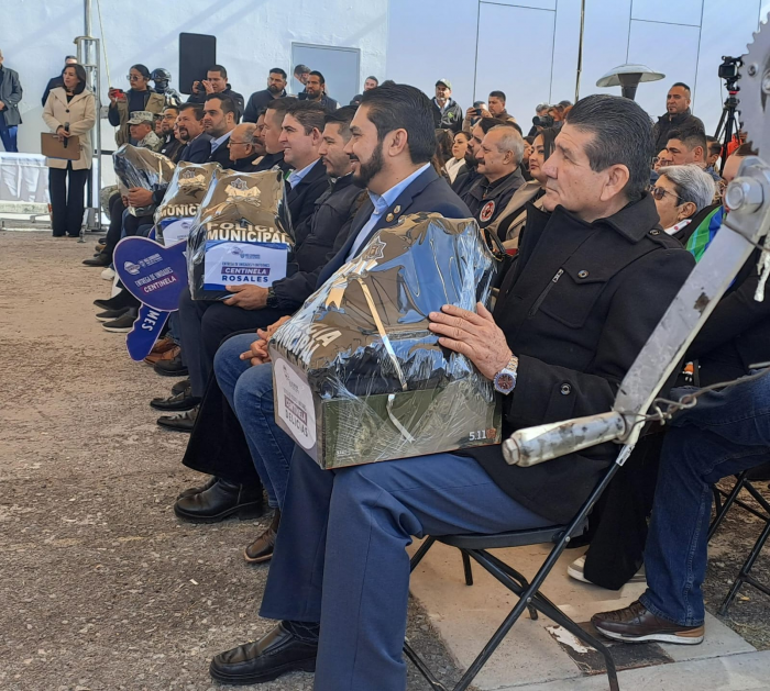CHIHUAHUA, Chih., 15 de enero de 2025.- En un acto encabezado por la gobernadora María Eugenia Campos Galván, se llevó a cabo la entrega de equipamiento de seguridad a las corporaciones municipales de la región...