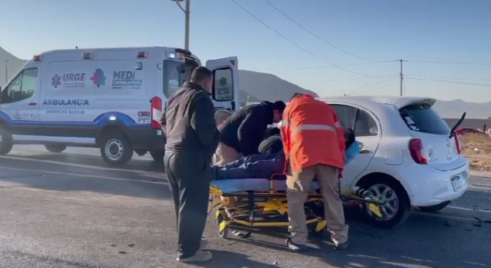 Chihuahua, Chih.- Este viernes se registró un choque en las cercanías del arco de Santa Eulalia cuando el conductor de un Nissan March cortó la circulación de un Nissan Sentra mientras intentaba ingresar al camino que...